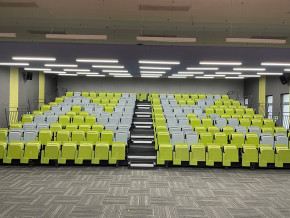 禮堂座椅多數由椅座、椅背、扶手、站腳、寫字板構成。一般情況組成結構一般為鋼木結構或鋼塑結構。適用在禮堂、影劇院、會堂、報告廳等場所。在使用時應有良好的視線,便于維修和清掃,使用時應舒適,使人不易疲勞。